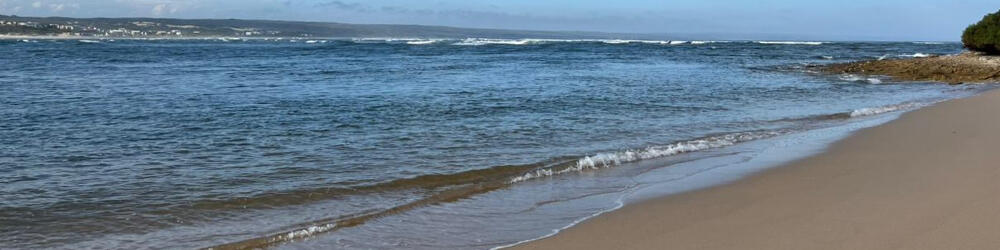 A lovely and easy, very safe swimming spot in the estuary at all tides. Very good for small children and dogs (turn left back onto the dirt road and after about 1.5km turn right at the marked sign and keep going down the hill till you reach the sea).